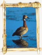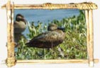 Similar to the redbilled teal but has a noticeable blue bill and is