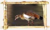 An orange-coloured goose that sits in floating vegetation and nests in